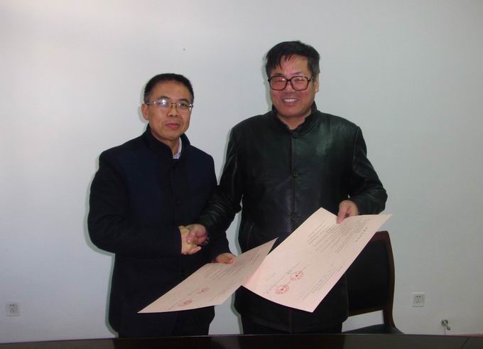 淮安市现代物流学会会长庞进亮与淮安发展研究院院长何伟交换了签立的合作协议书。 |